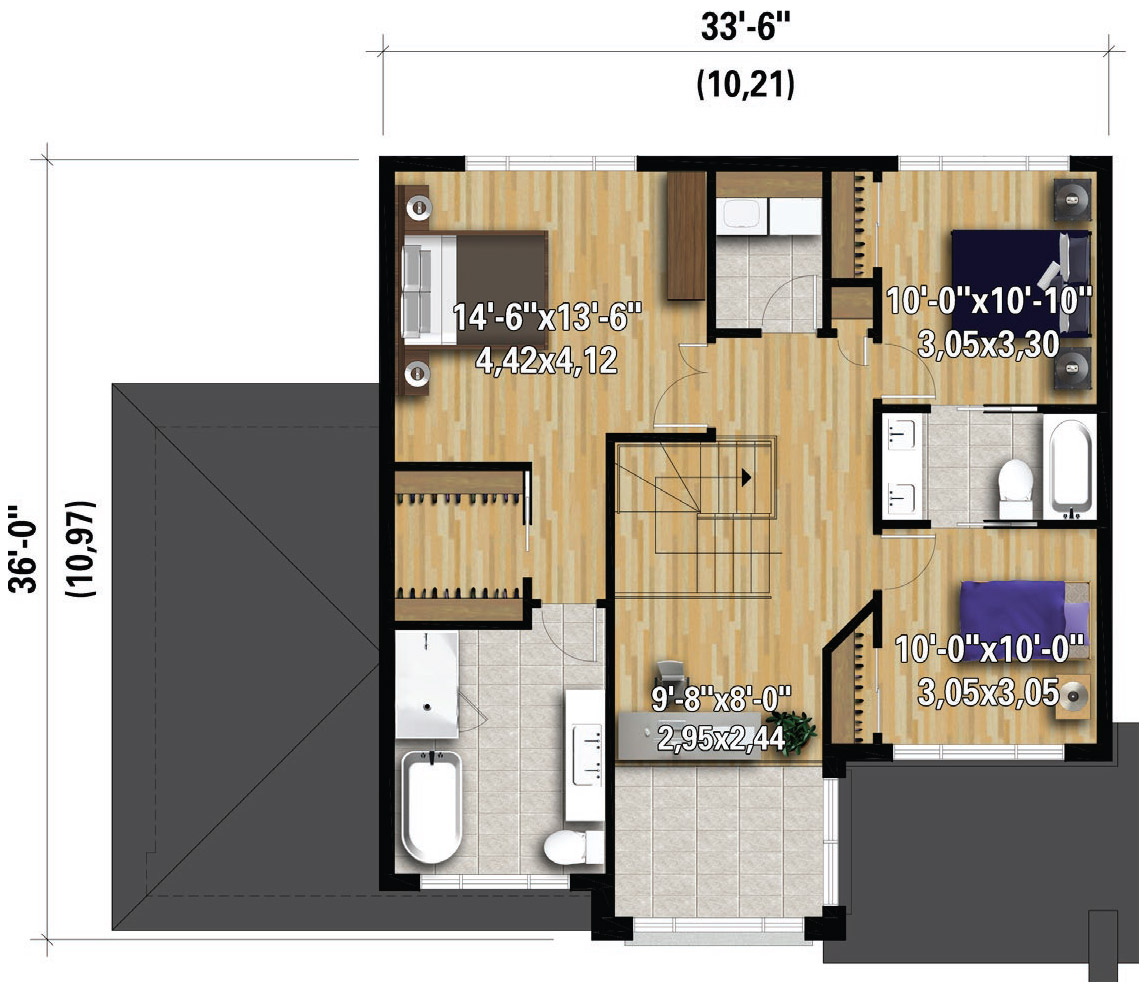 - Bois franc teint et vernis 3-1/4’’ au rez-de-chaussé, incluant les chambres