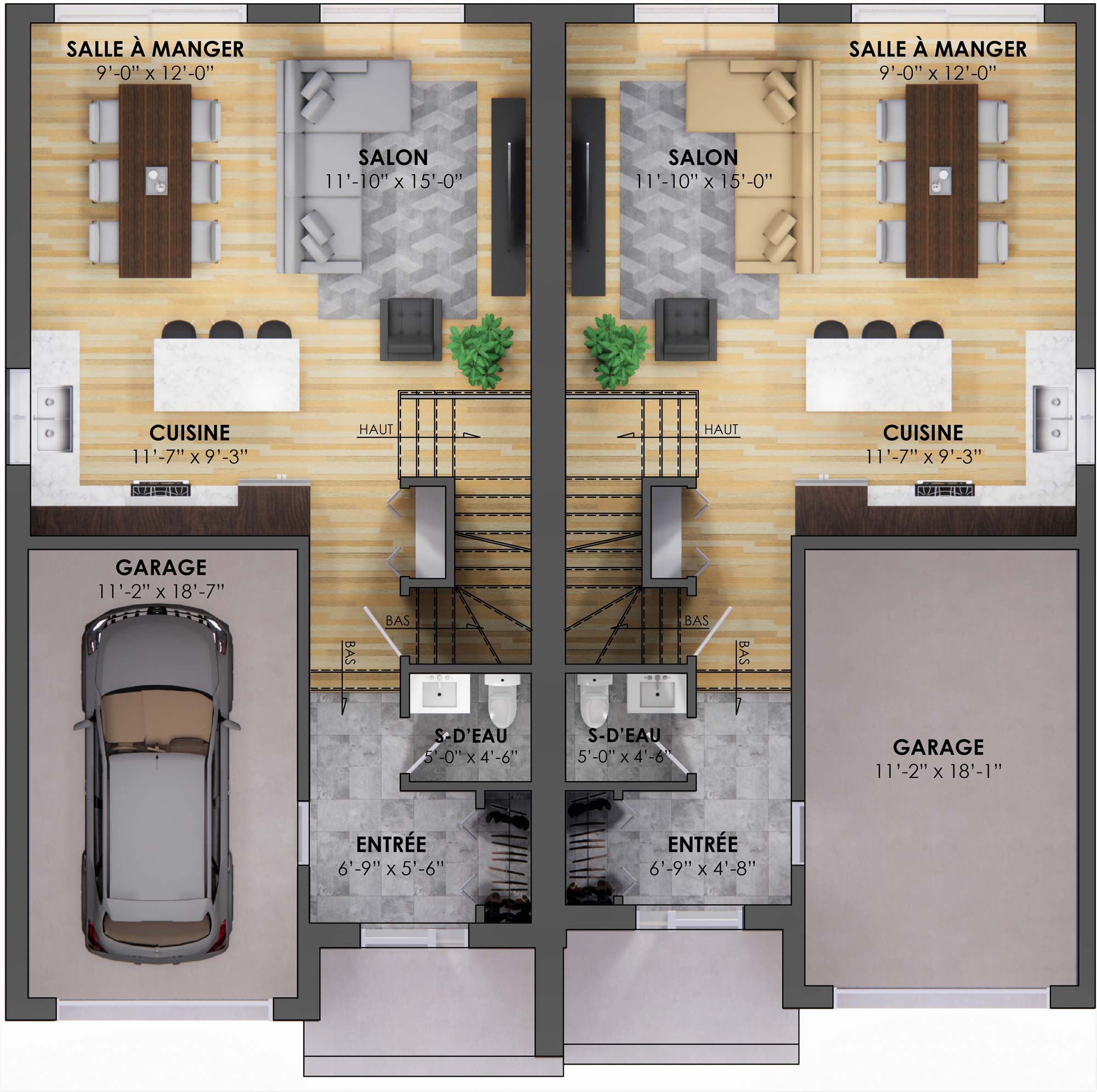 - Céramique 24’’ x 12’’ à l’entrée, cuisine et salle de bain